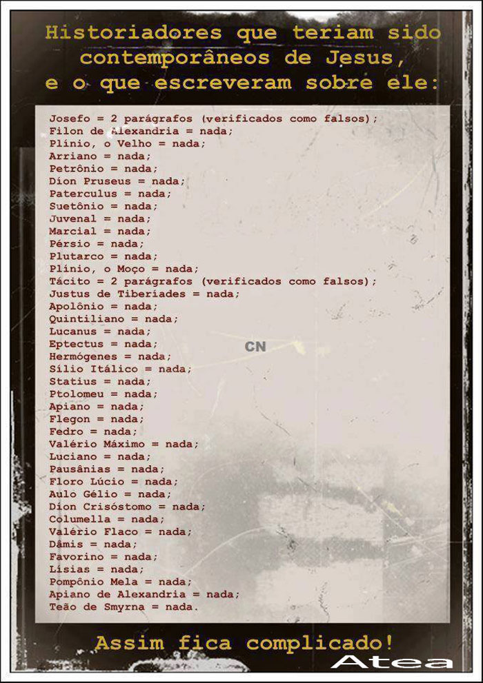 1- E algo impossível existir uma pessoa com as características e atos de Jesus, e nenhum escritor dos seus dias tomar conhecimento da existência dele.