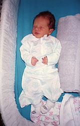 Quando foi fotografada, Megan era um bebê saudável, dorminhoco e gostava de ouvir Mozart. É o que mostram o texto elaborado pelos pais e as fotografias da época.