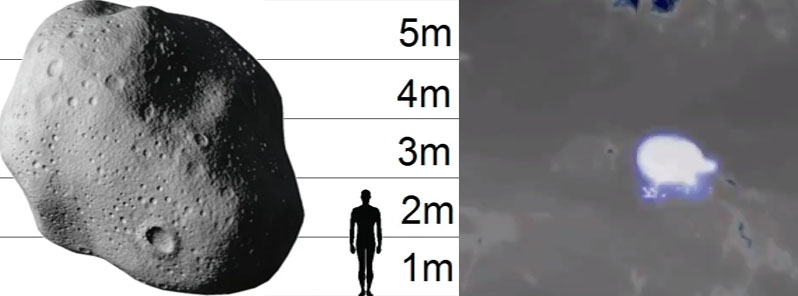 “A partir dos dados disponibilizados pela JPL/NASA, foi possível calcular que a massa do asteroide 2019 MO era de cerca de 226 toneladas, o equivalente a cerca de 4 carretas bitrem carregadas, ou 95 Kombis lotadas, ou ainda 1500 lutadores de sumô. Para essa massa, se considerarmos a densidade média de condritos ordinários (3,35 g/cm³), teremos o diâmetro médio do asteroide em torno de 5 metros. Não é todo o dia que um objeto desse tamanho atinge a Terra.”