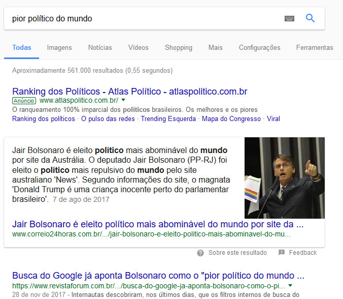 Pesquisa Google, 10 de dezembro de 2017.