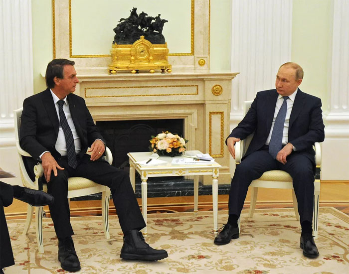 Logo ao se encontrar com Putin, Bolsonaro afirmou que o Brasil era “solidário à Rússia” e que ambos países tinham “muito no que colaborar”, citando temas de defesa, agricultura e petróleo e gás. As declarações foram feitas antes da coletiva de imprensa final entre os dois líderes, na qual Bolsonaro disse pregar a paz e respeitar “quem age desta maneira”.