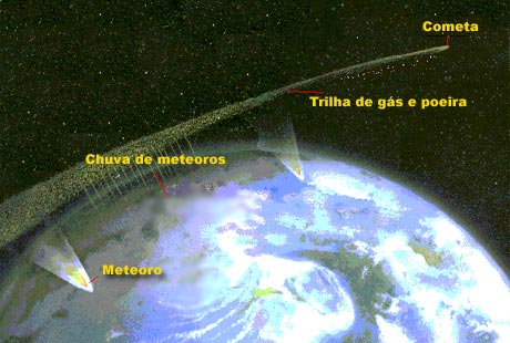 Na verdade, esses meteoros são fragmentos do cometa Swift-Tuttle (1862 III) que ficaram pra trás. Quando a Terra cruza com esse rastro deixado no espaço, acontece as chamadas chuva de meteoros.