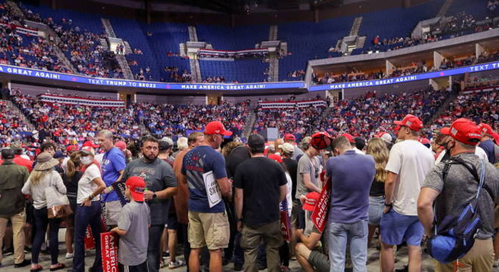 Apoiadores de Trump se aglomeraram e não usaram máscaras em comício em Tulsa