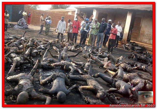 Recebi hoje um e-mail com uma foto que mostra dezenas de corpos queimados com a manchete: “Cristãos queimados vivos por muçulmanos sunitas da Nigéria”.