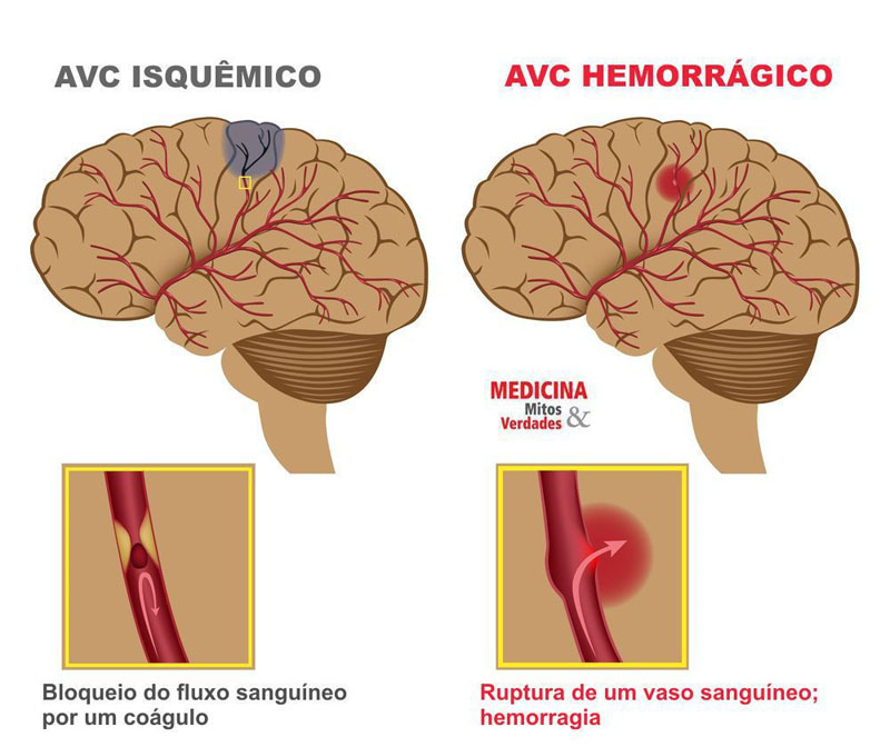 O AVC decorre da alteração do fluxo de sangue ao cérebro. Responsável pela morte de células nervosas da região cerebral atingida, o AVC pode se originar de uma obstrução de vasos sanguíneos, o chamado acidente vascular isquêmico, ou de uma ruptura do vaso, conhecido por acidente vascular hemorrágico.