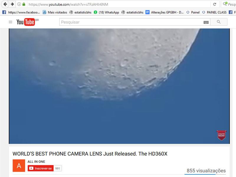 Em outra propaganda da mesma câmera, eles mostram uma foto de um pedaço da Lua, foto que só é possível se a lente tiver um zoom próximo de 360x. Mas a lente que vendem tem apenas 8x.