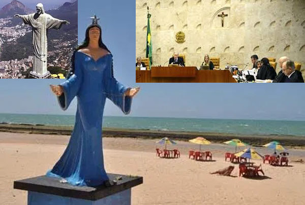 É  bem contraditório o dito “estado laico” brasileiro.  Quando adeptos de religião africana quer expor seu objeto de culto, “O culto deve ser exercido em locais apropriados. A praia não é o local“.   Mas, quando se trata do objeto de culto cristão, tem imagem do Cristo e cruzes por todos os lados em lugares públicos, até um crucifixo na corte suprema de justiça do país.  Por que  Iemanjá não pode, e o Cristo pode?  Se a praia não é local de culto, a suprema corte de justiça pode ser?