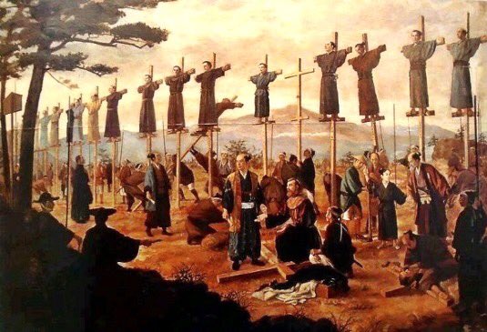 Na última metade do século 16, 26 missionários em Nagasaki foram executados por crucifixação, o que marcou o início de um longo período de perseguição contra cristãos.
