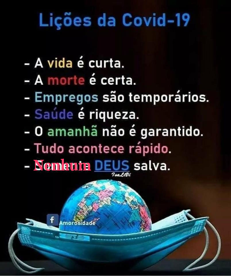 A imagem original dizia que “somente deus salva”; pelo que precisou de uma correção. A pandemia provou que nenhum deus salva; nem os milhares de deuses indianos, nem o deus único dos judeus, cristãos e muçulmanos, nem qualquer outro.
