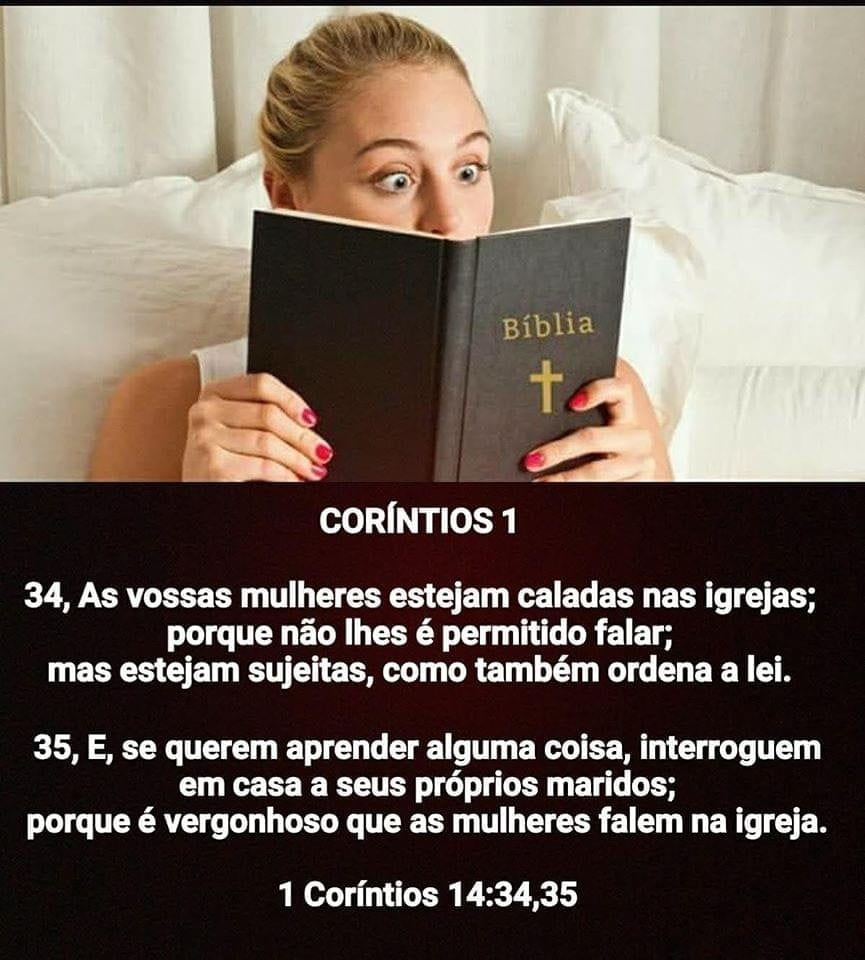 Usando a passagem de 1 Timóteo 2:11, o pastor decidiu que era hora de calar as mulheres: “A mulher aprenda em silêncio com toda a submissão”, disse o pastor, completando: “Mas eu Não permito que a mulher ensine, nem use de autoridade sobre o homem”. Na sequência, o pastor leu o capítulo 14 de 1 Coríntios: “As vossas mulheres estejam caladas nas igrejas, pois Não lhes é permitido falar”.