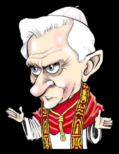 “Bento 16 (na caricatura ao lado) disse que as religiões monoteístas não podem ser responsabilizadas pela violência desencadeada supostamente por motivos religiosos.