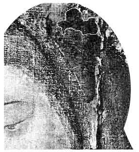 Outros aspectos, como o suposto acréscimo de raios, meia lua, anjo… pelo contrário não podem determinar-se com tanta claridade como pretendem os norte-americanos que consideram que essas alterações se produziram para encobrir os danos sofridos pelo tecido na inundação de 1.629. Não obstante a figura 1 está datada de 1.606 e já apresenta os ditos elementos. Se realmente são acréscimos têm que datar de uma época anterior. Além disso é preciso notar que Smith e Callagan parecem estar incorrendo em um erro ao considerar que as zonas que apresentam uma deterioração inegável são os acréscimos enquanto que a que permanece aparentemente incólume é a original. O problema é que nenhuma parte do manto está livre de danos. Para comprovar isto basta comparar a fig. 2 com a fig. 3, uma cópia realizada pelo pintor Correà em finais do século XVII e que levou a cabo sua intenção de ser fiel ao original até o ponto de que, segundo seu discípulo Cabrera, realizou uma reprodução exata do desenho utilizando um papel de seda. Como podemos ver, as cores clarearam no original muito mais que na reprodução dada sua menor antigüidade. Por último, recentemente vieram à luz pública fatos que demonstram que, embora os norte-americanos tivessem razão em algumas de suas afirmações, se equivocaram gravemente em outras. Logo voltaremos ao tema.