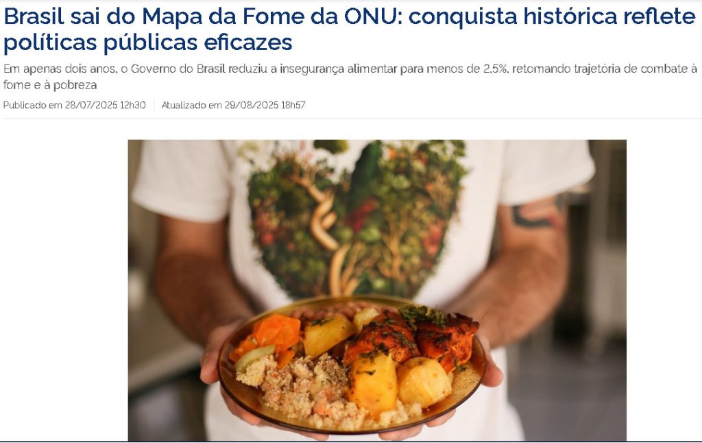 De Collor a FHC, o Brasil só afundava no mapa da fome. Foram necessários dois governo de Lula e um de Dilma para o país se livrar desse drama. Mas o golpe do impeachment recolocou o país no mapa da fome, e só o retorne de Lula possibilitou sair dele novamente. Mas temos uma grande batalha pela frente.