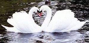 Uma relação um pouco mais concreta encontramos em um casal de cisnes. Quando parecem estar “se beijando”, seus pescoços tomam a forma de um coração e possivelmente o autor tenha baseado sua criação neste fato.
