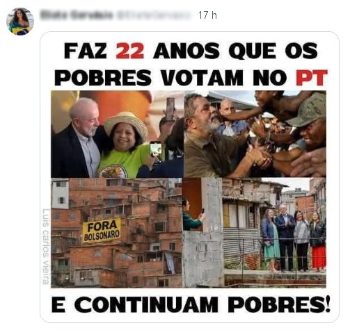 Se os pobres tivesse continuado votando no PT por todo esse período, com toda certeza, estariam menos pobres hoje. Mas o problema é que uma maioria pensou que estivessem ficando rica e virou para a direita, e e todos saíram mal.