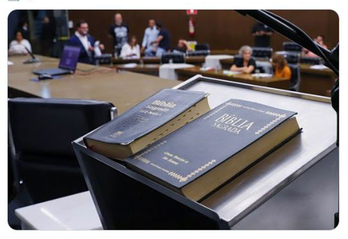 “Entendeu a Corte de Justiça que a norma que determina a existência de exemplar da Bíblia nas escolas e nas bibliotecas públicas, impõe a institucionalização de comportamento, em espaço público estatal, de divulgação, estímulo e promoção de um conjunto de crenças e dogmas presentes nessa crença, em prejuízo de outras crenças, configurando, assim, ofensa ao princípio da laicidade estatal, da liberdade religiosa e da isonomia entre os cidadãos.