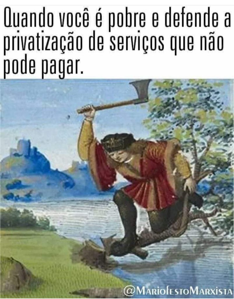 Por que você não pensa um pouquinho para entender que o seu voto está dando a eles poder contra você mesmo? Eles querem privatizar a água e a luz também, o que tornará sua conta de água e luz mais cara, dificultando ainda mais a sua vida. Por que você ainda insiste em votar neles? É porque o seu pastor manda? Seu pastor também é rico e tem interesse em manter você pobre, como uma ovelha fácil de conduzir. Acorde.